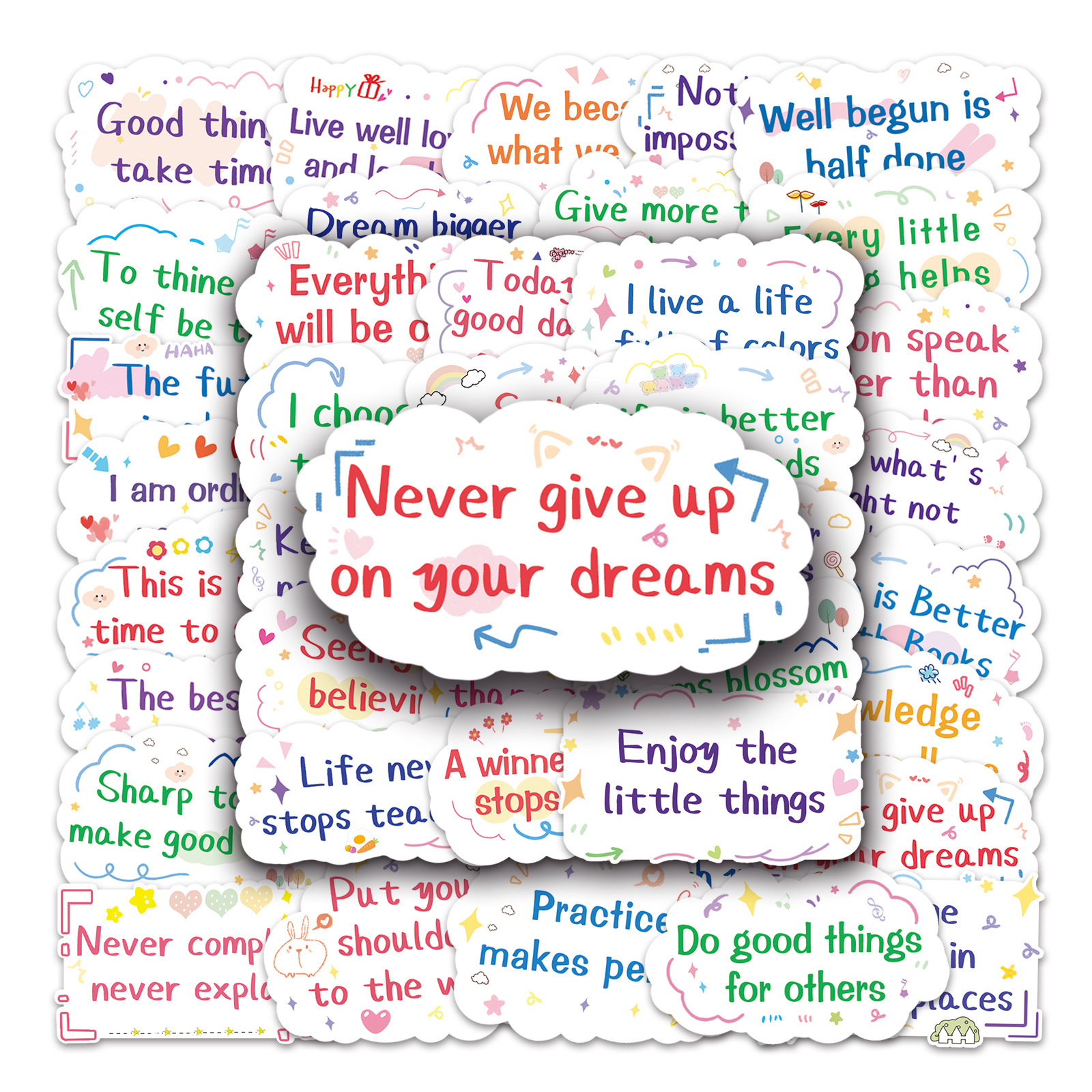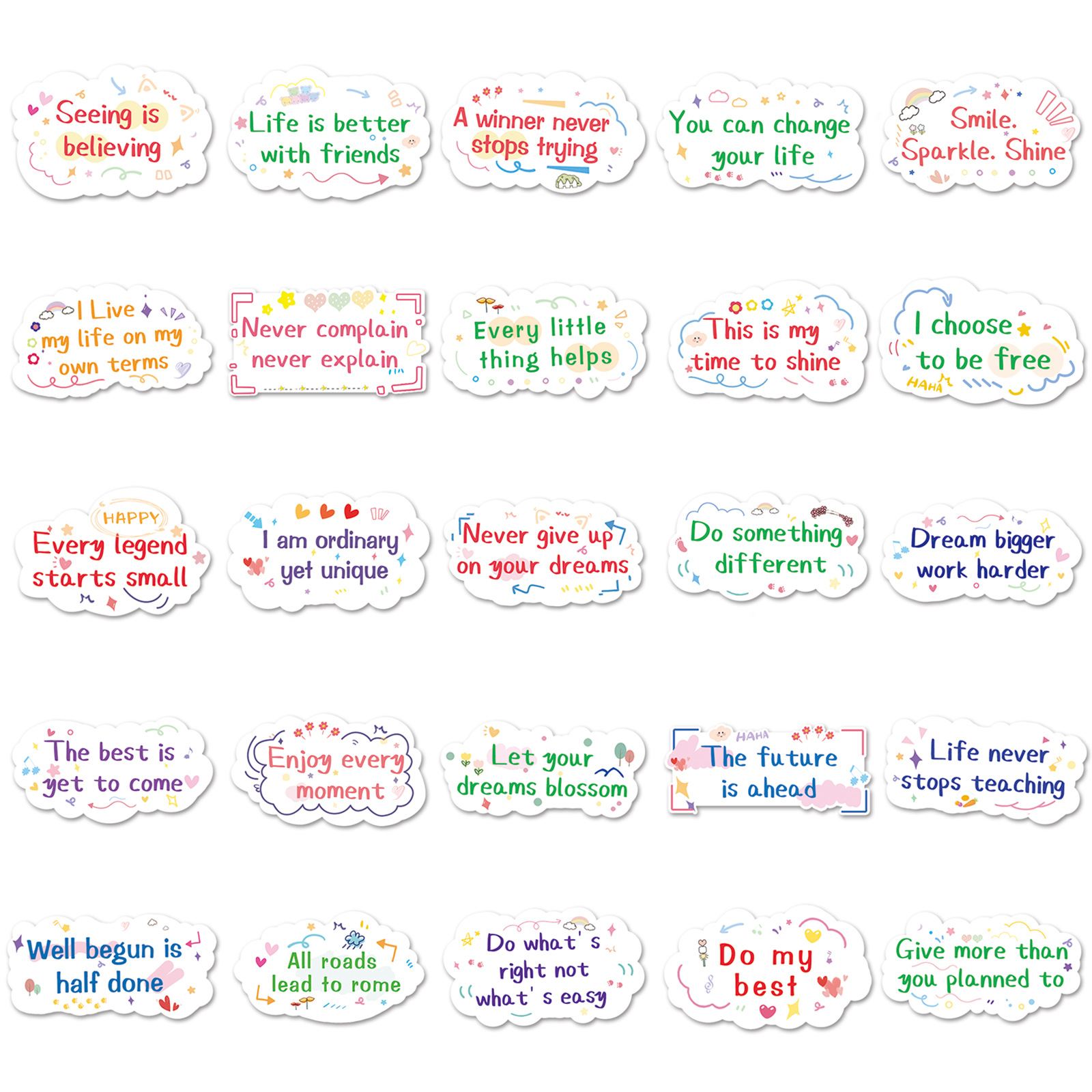 DIY Stickers - 50PCS Motivational Quote Decals for Water Bottles & Luggage, Waterproof & Unique Doodle Art, Inspirational Gift (Trending on TikTok)