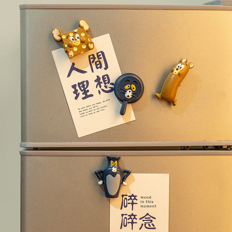 Cartoon Magnetic Fridge Stickers | Cat & Mouse Relief Design | Fun Home Decor | Adorably Cute Must-Have