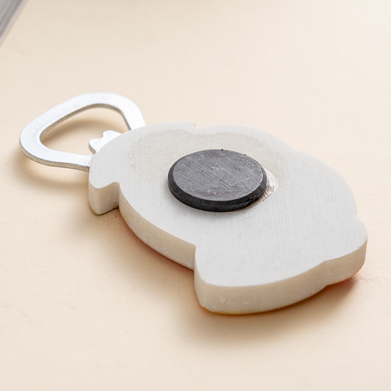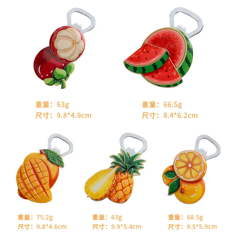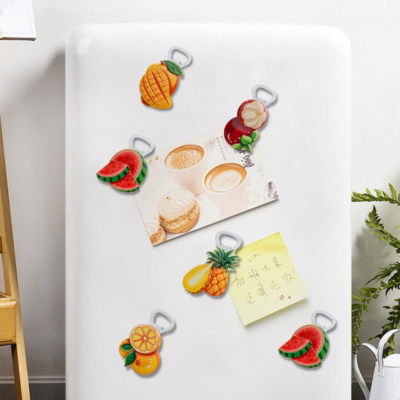 This creative magnetic bottle opener features an adorable mango design, serving as both a functional tool and a charming home decor piece. Equipped with a strong magnet, it easily attaches to your fridge or any metal surface for convenient access. Perfect for family gatherings or everyday use, it's a delightful addition to your kitchen.