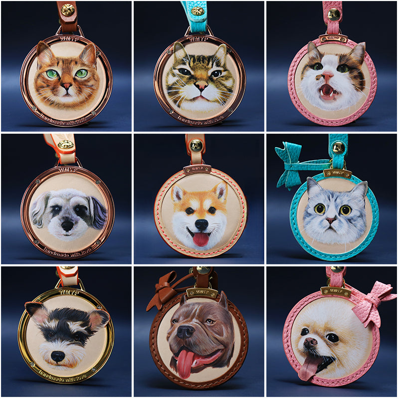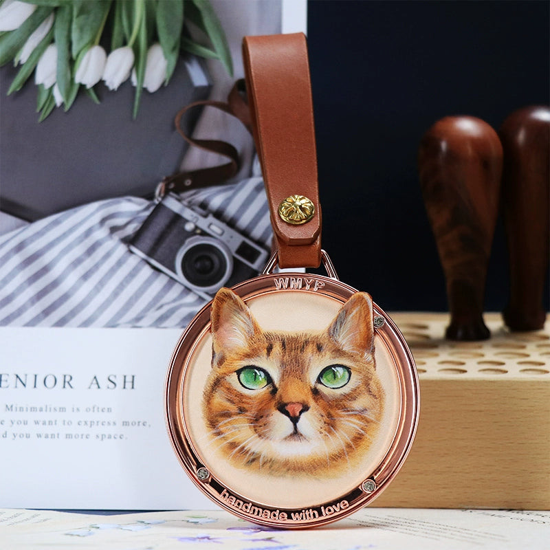 Crafted from genuine leather, this custom pet keychain features a hand-painted and carved portrait of your beloved dog or cat. Each piece is uniquely made to capture your pet’s charm. A heartfelt keepsake for yourself or a touching gift for a pet lover.