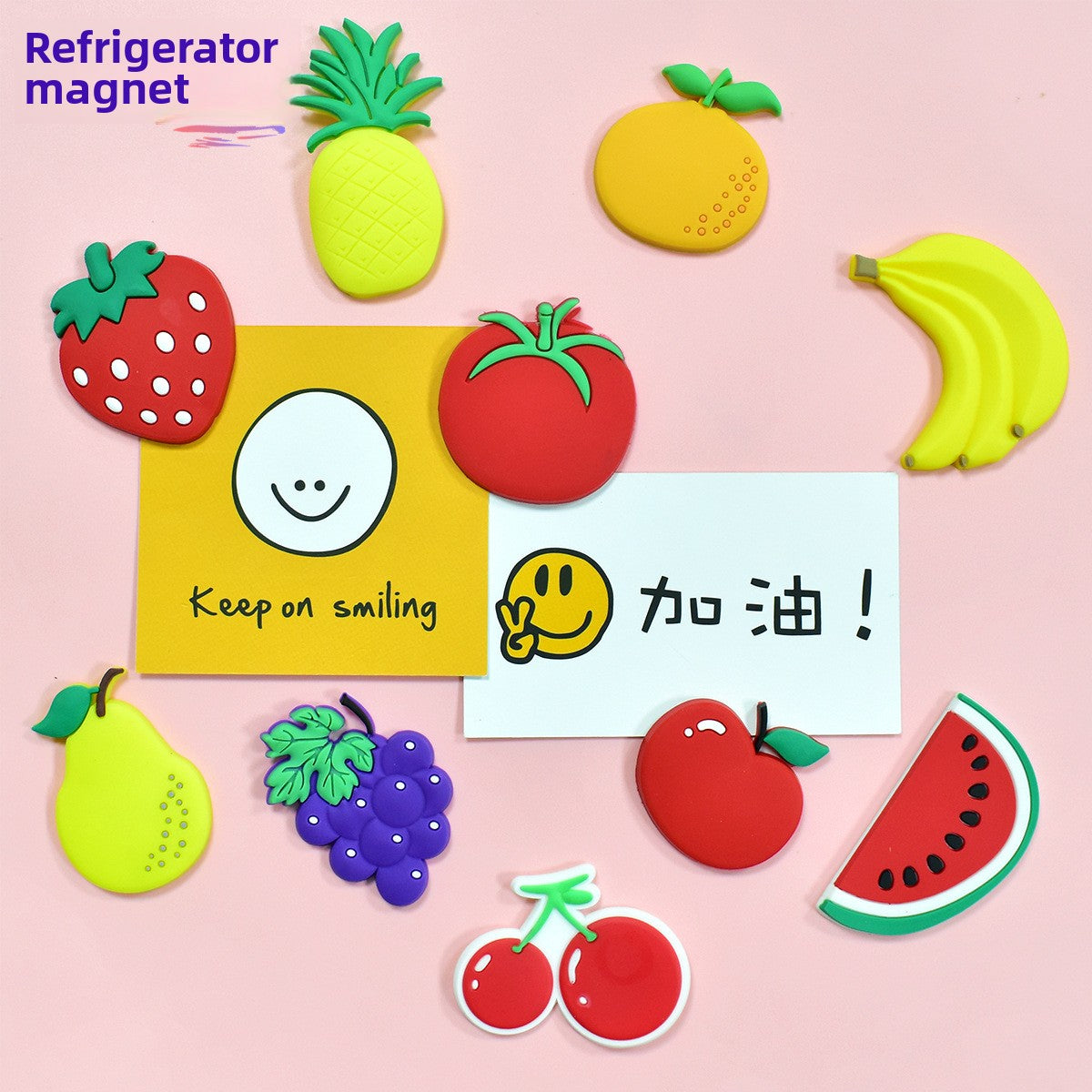 Cute Fruit Cartoon Fridge Magnets – PVC Soft Rubber Educational Magnetic Stickers for Kids