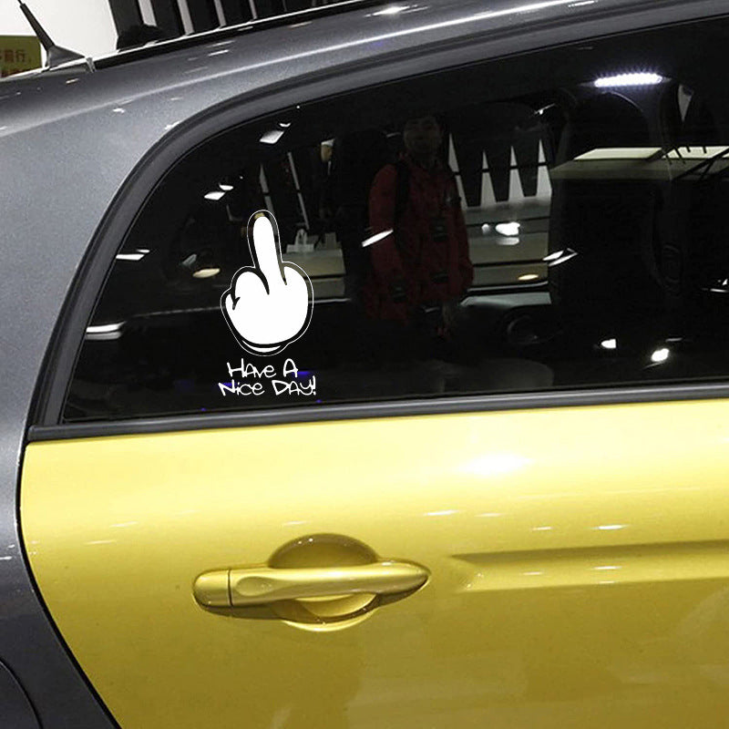 Funny Middle Finger Car Sticker – Waterproof Vinyl Decal for Window or Body, Bold Personality Statement