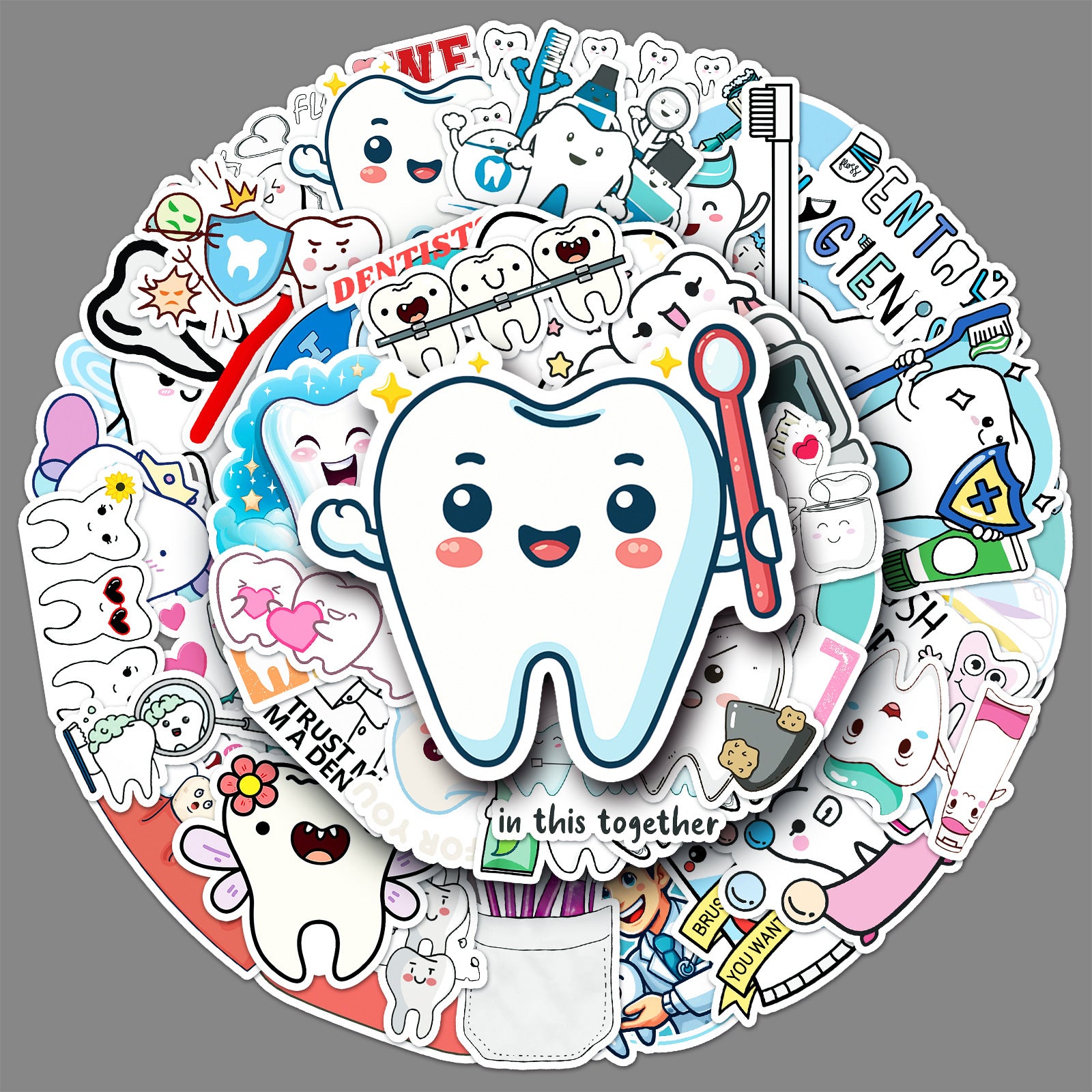 50 Pcs Graffiti Teeth Stickers, Cute Cartoon Decorative Labels, Water Bottle, Luggage, Notebook Decor, Unique Creative Design to Boost Personal Style