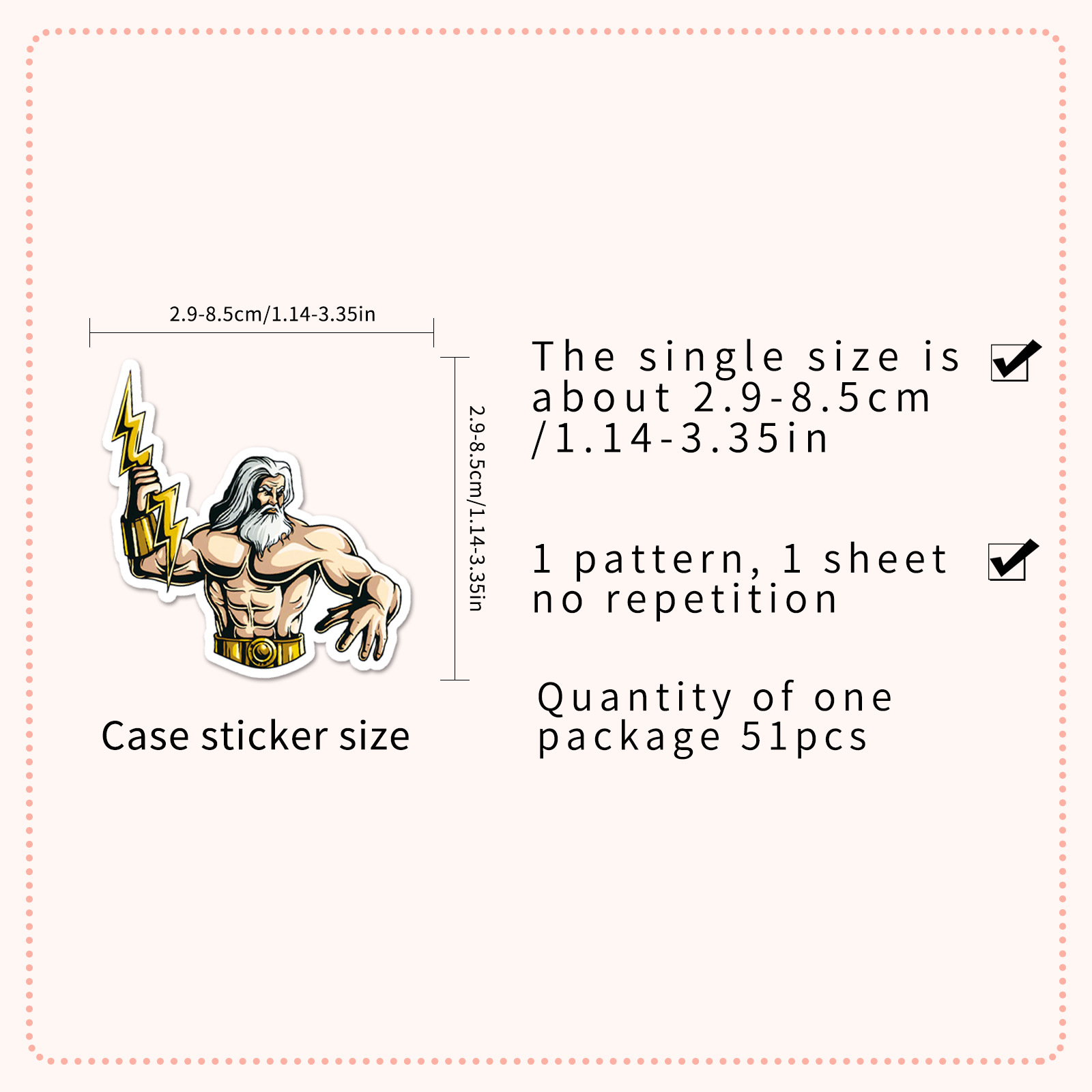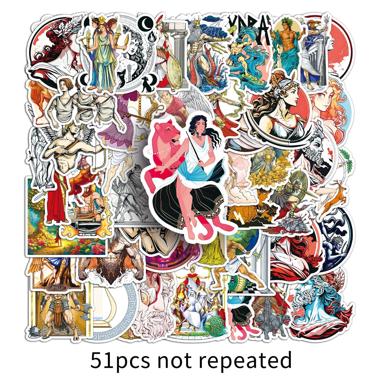This set of 51 Greek mythology character stickers features vintage graffiti-style designs, showcasing iconic deities like Zeus and Athena. Made from high-quality, waterproof materials, they're perfect for decorating phones, laptops, and more. Whether for personal use or as a gift, they offer a unique way to express individuality and taste.