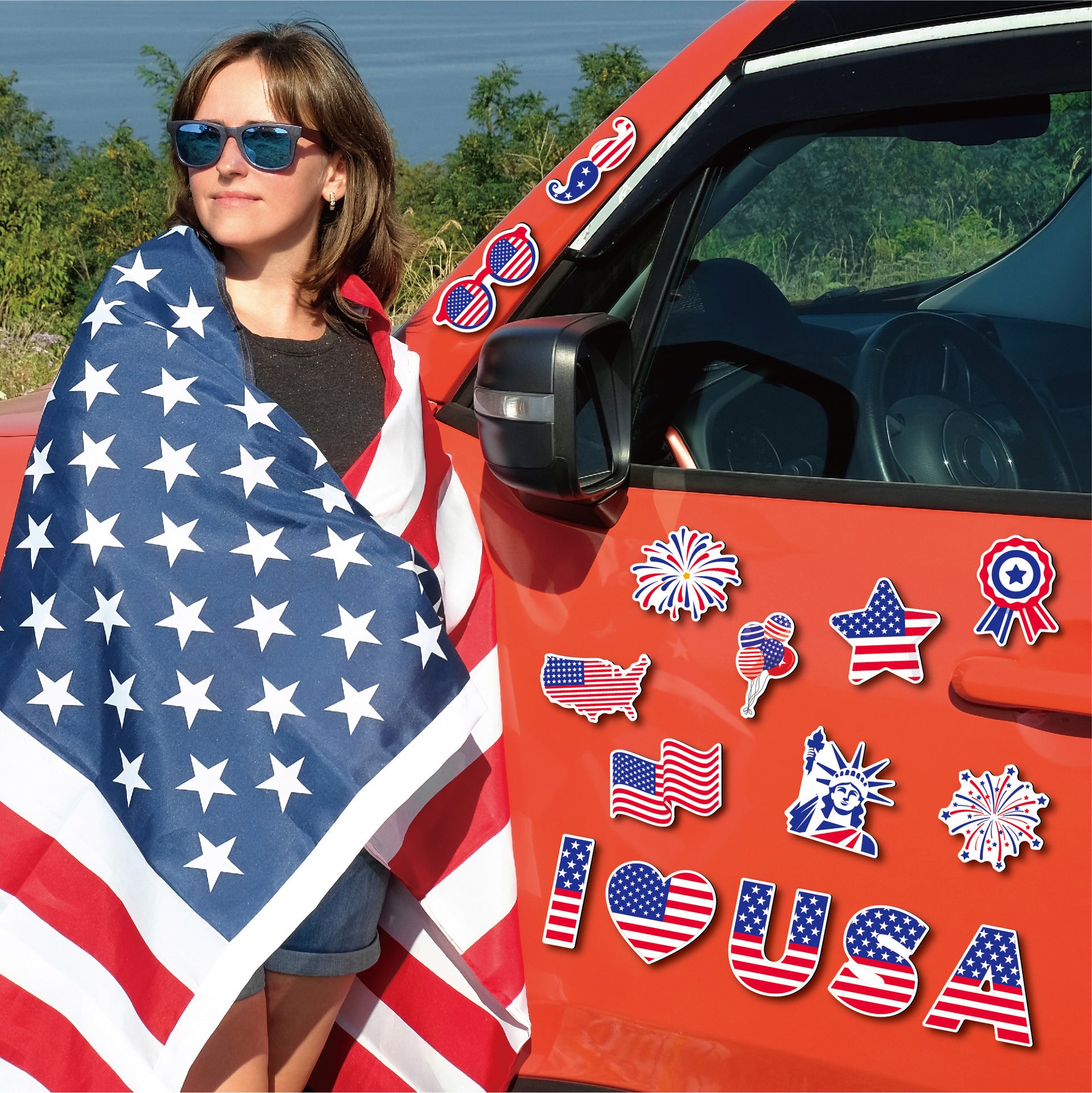 Celebrate Independence Day with our vibrant magnetic stickers! Perfect for decorating garages, refrigerators, cars, and boats. Easy to apply and remove, these stickers add a festive touch to any surface.