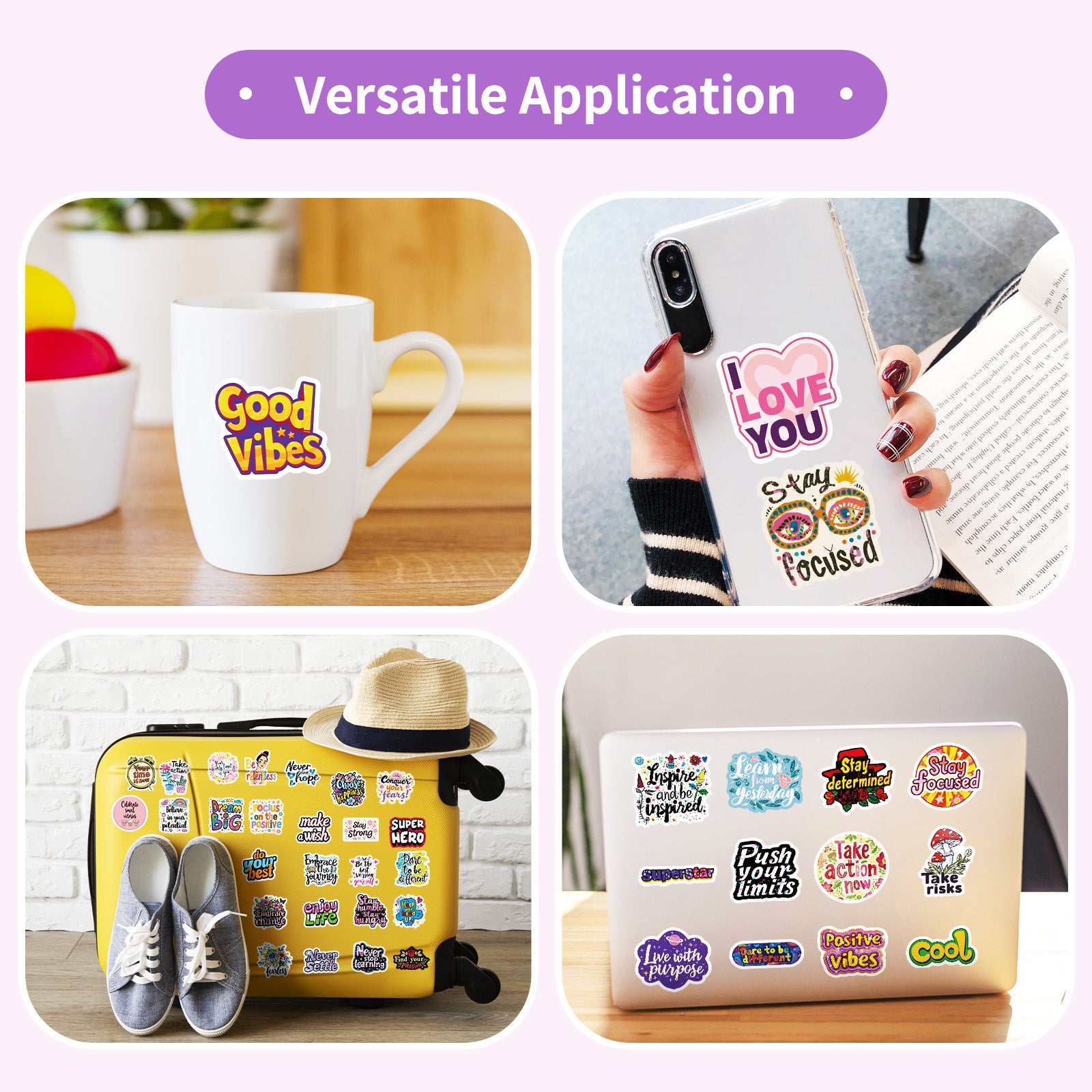 Get inspired every day with this 50-pack of motivational quote stickers! Each vinyl decal features a unique, uplifting design perfect for laptops, water bottles, notebooks, skateboards, and more. Waterproof, fade-resistant, and easy to peel & stick. Great for students, creatives, or anyone who needs a daily boost of positivity!