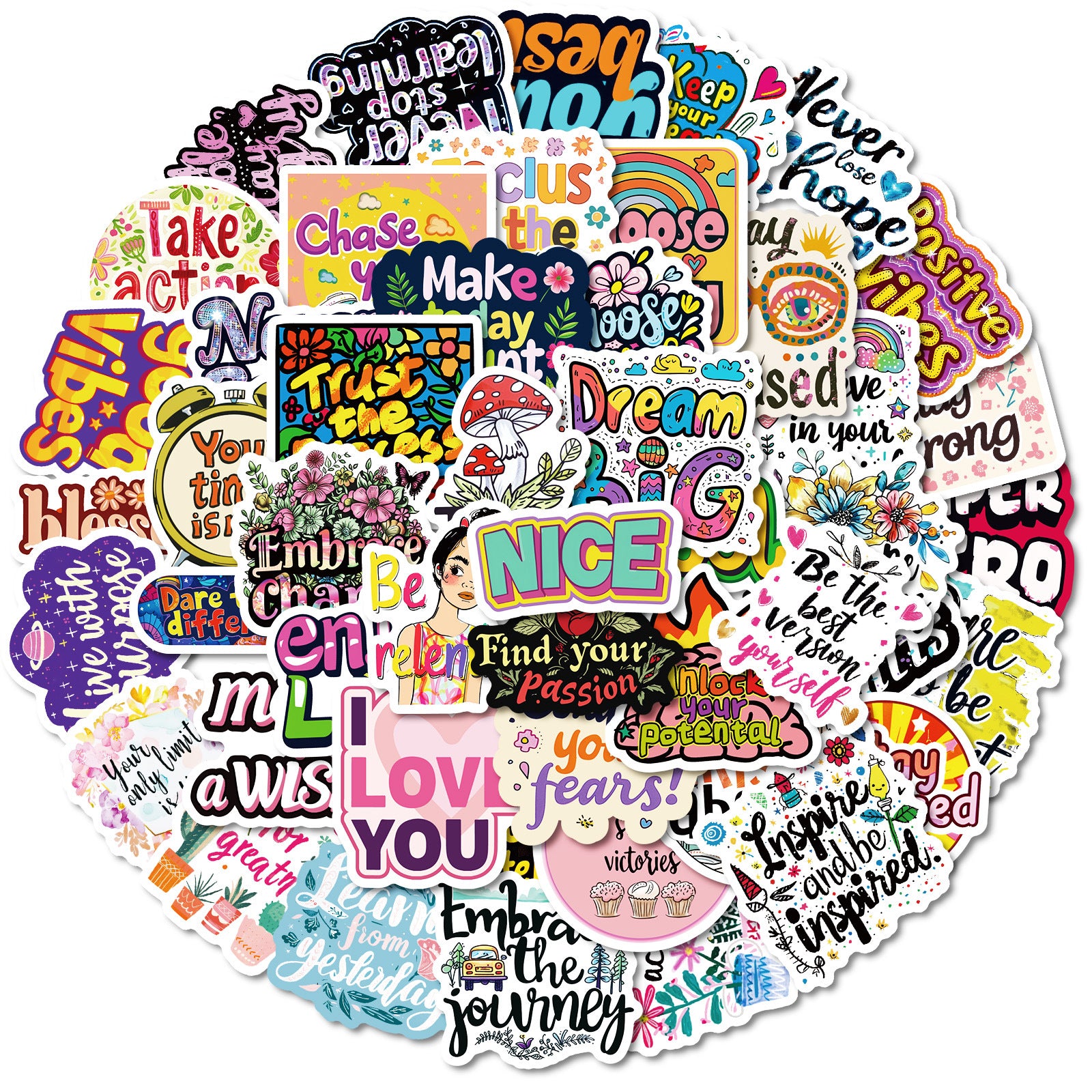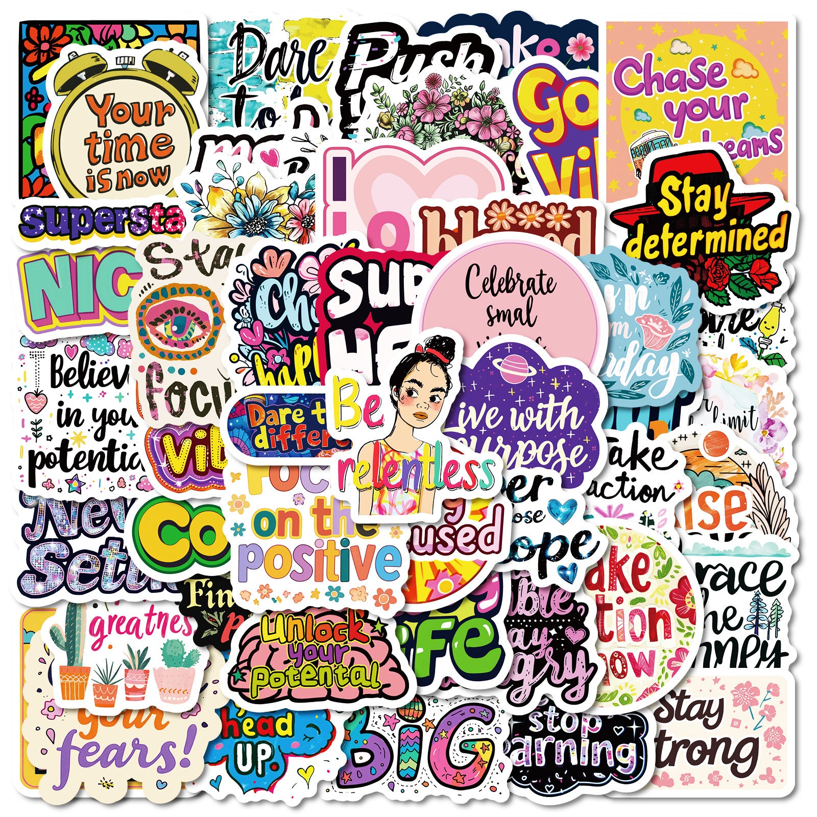 Inspirational Quote Stickers Pack – Waterproof Vinyl Decals for Laptops, Water Bottles & More | 50 Unique Positive Designs for DIY & Motivation