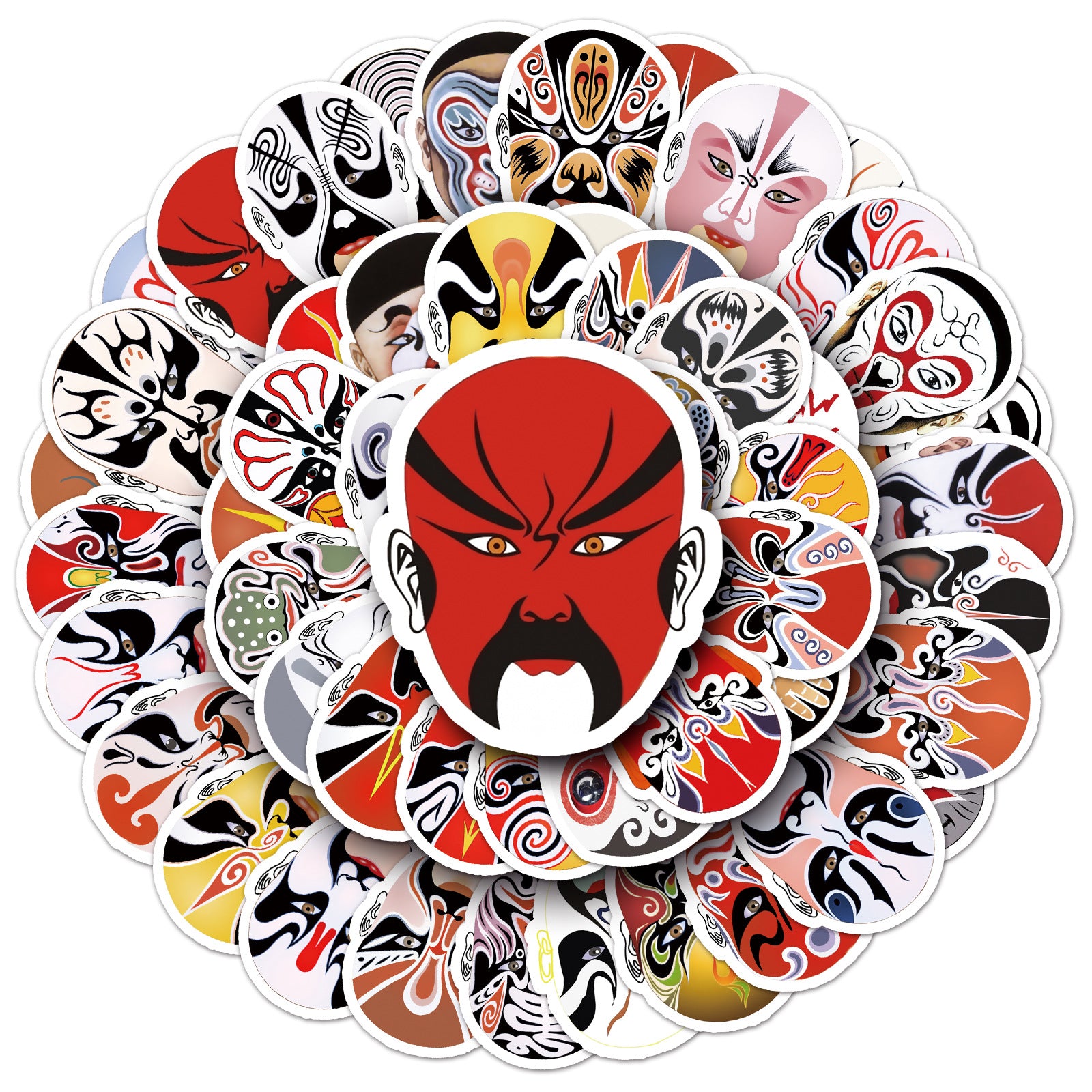 【Chinese Style Stickers】60 Pcs Peking Opera Facial Mask Waterproof Sticker Set|Perfect for Journals, Luggage, Fridge, Suitcase, Car – Showcase Oriental Art Charm