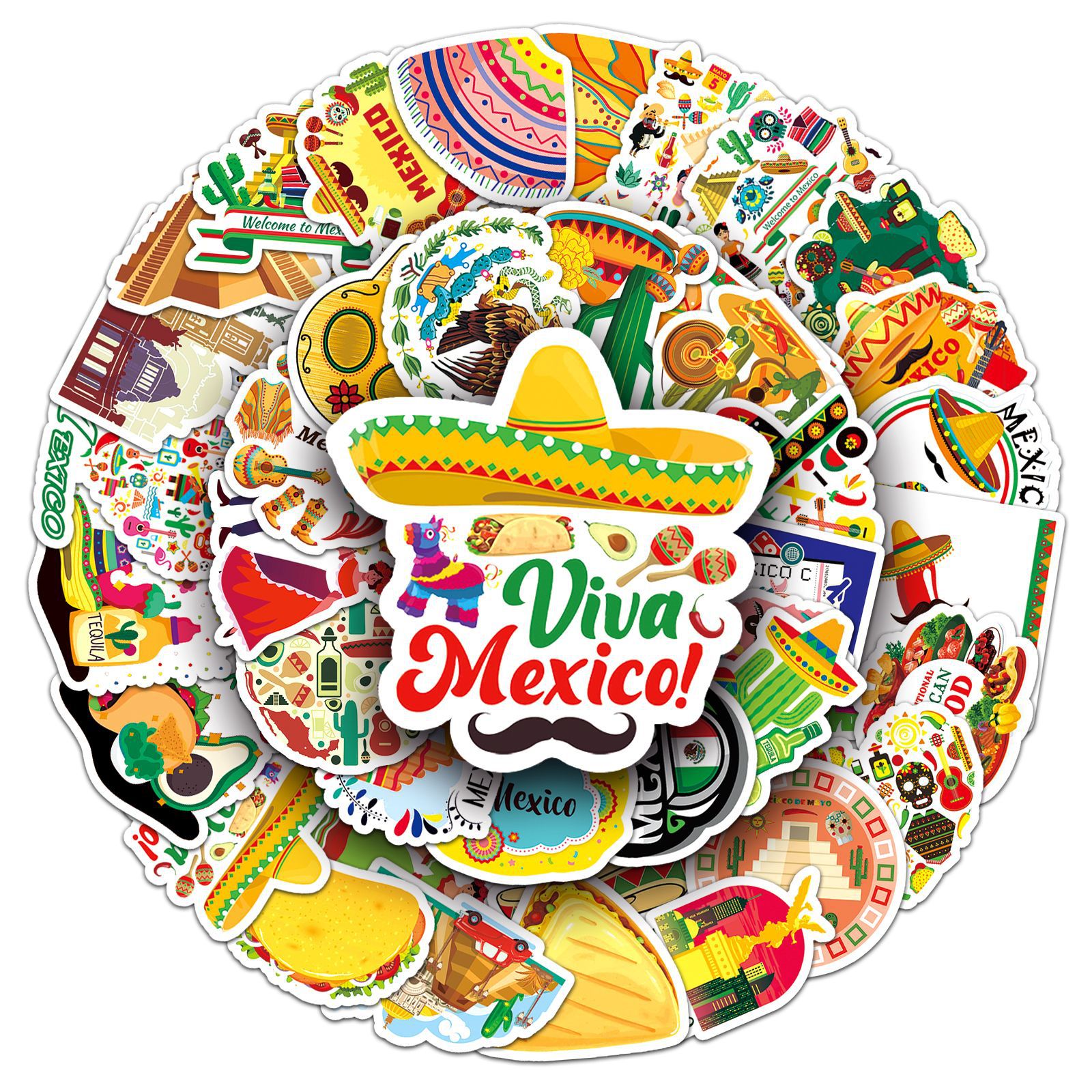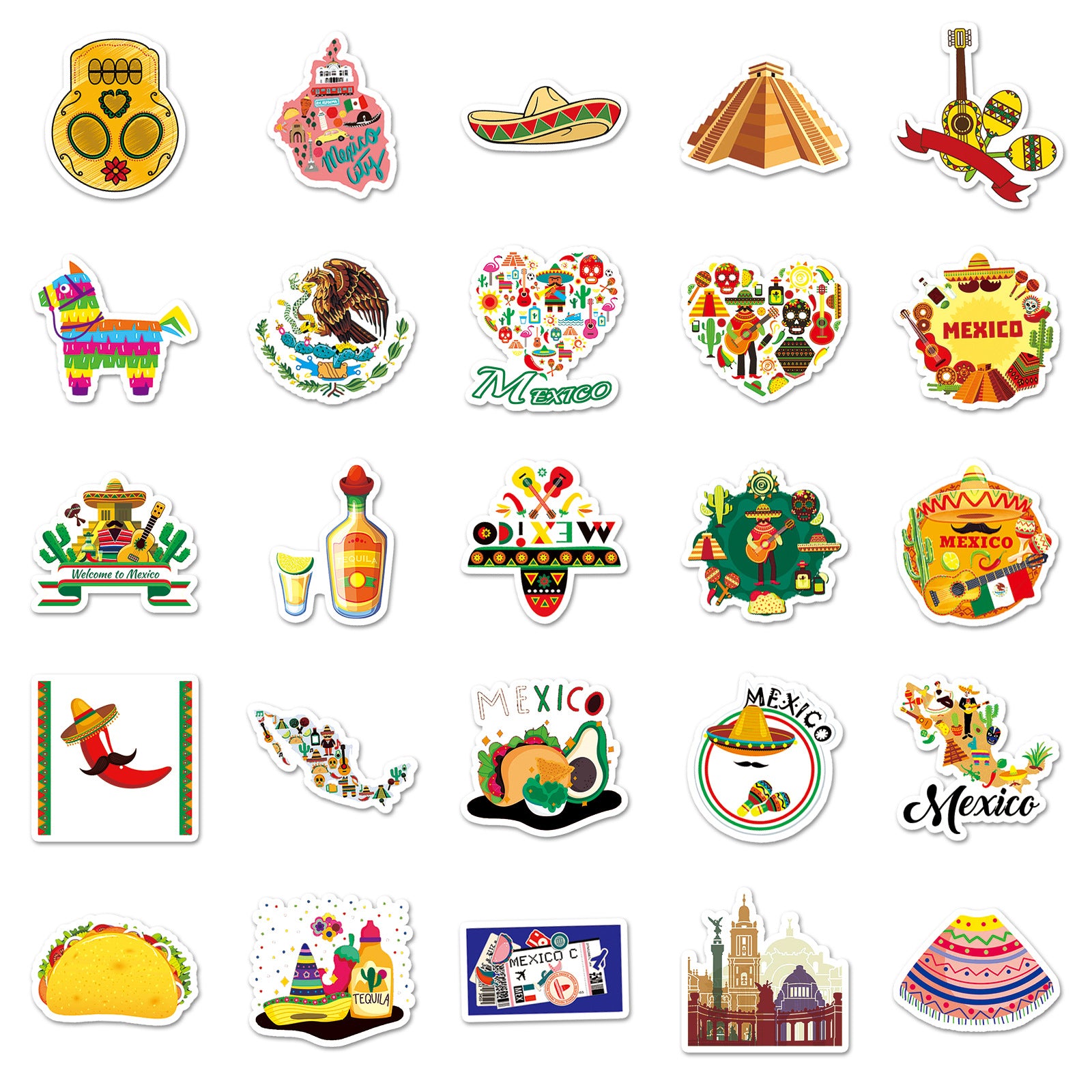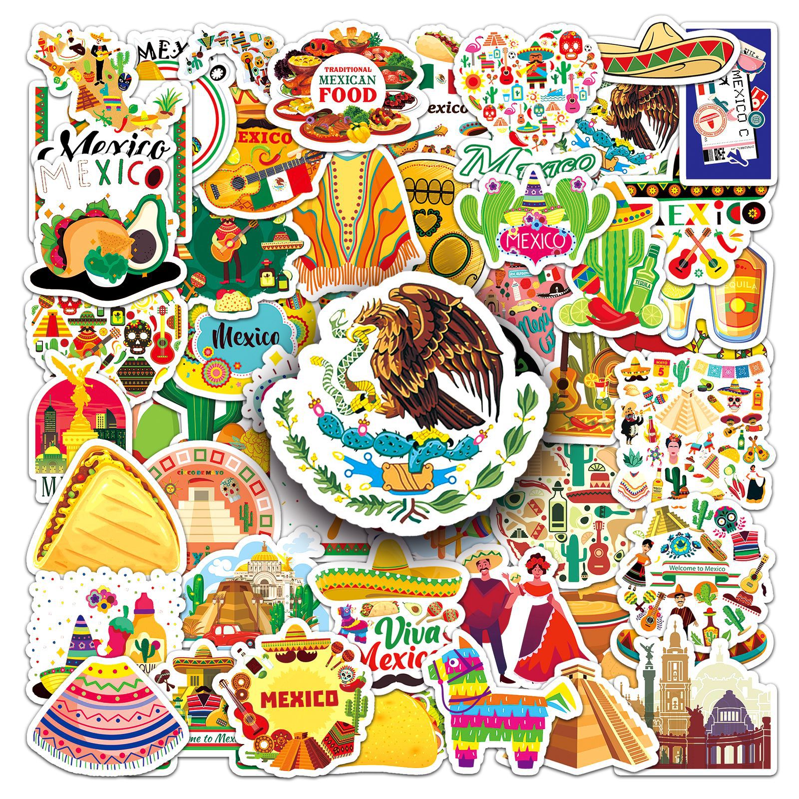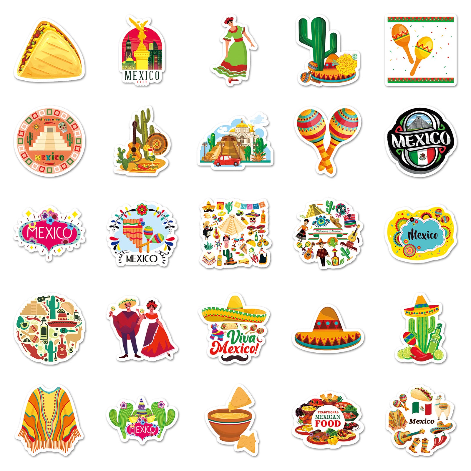 Mexico Travel Stickers Pack – 50PCS Waterproof Graffiti Decals for Luggage, Laptop & Scrapbook | Vibrant Mexican Landmarks & Culture
