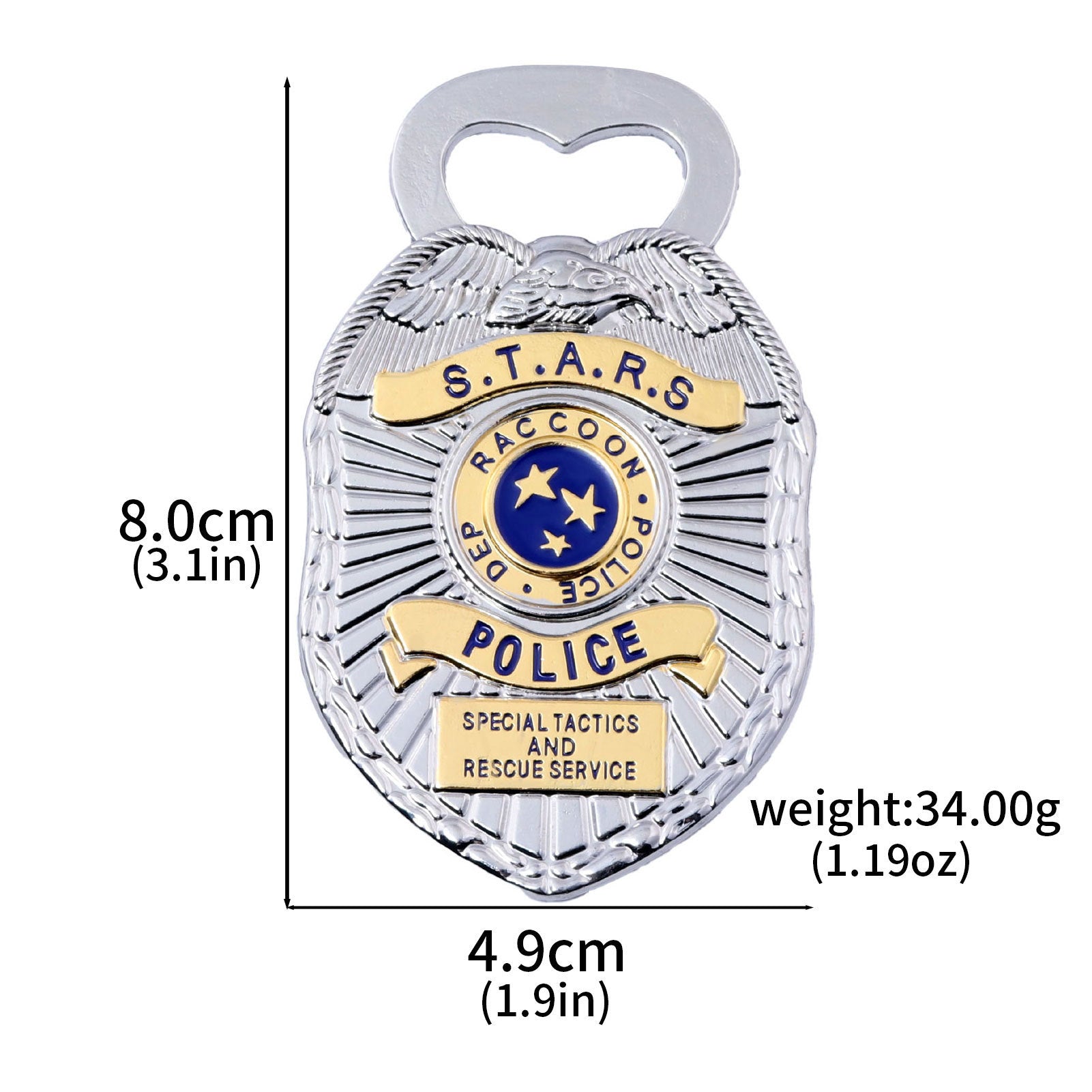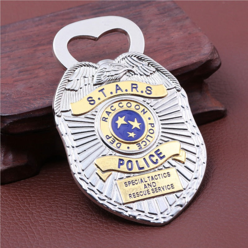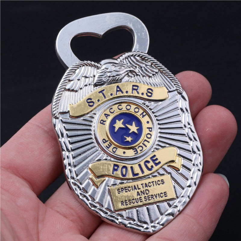 This Raccoon City badge bottle opener combines functionality with collectible appeal. Its magnetic design allows it to attach securely to your fridge for easy access. Serving also as a keychain, it's convenient to carry. The detailed Raccoon City emblem evokes fond memories for game enthusiasts, making it an ideal gift for friends or yourself.