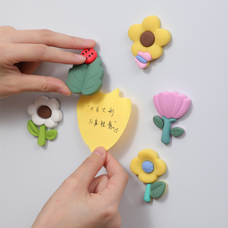 Flower Refrigerator Magnets - Soft Rubber Fridge Stickers with Adorable Cartoon Designs, Vintage Floral Whiteboard Decor for Home & Office