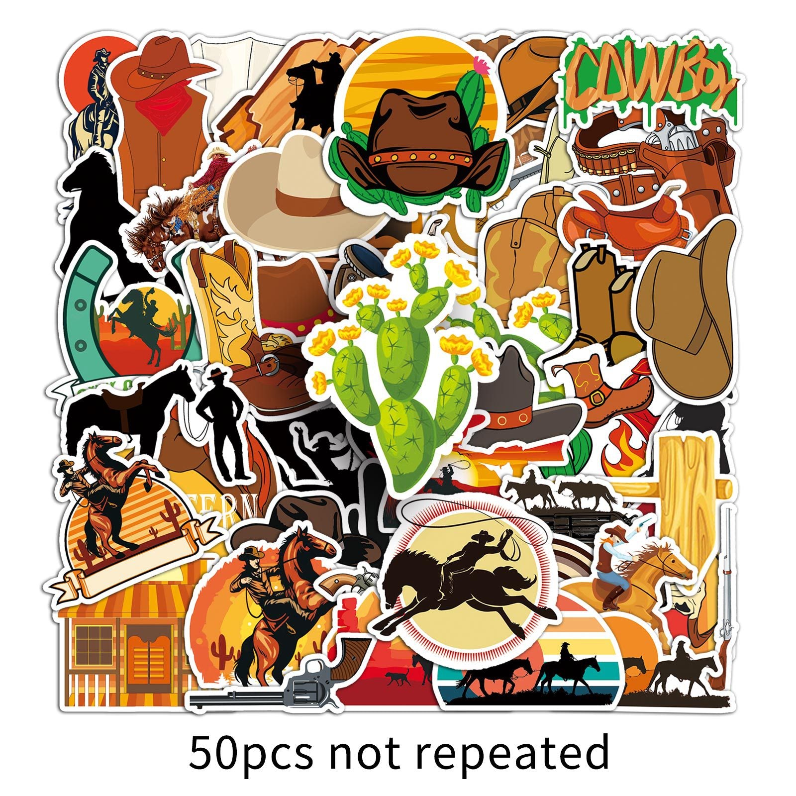 50PCS Western Cowboy Sticker Pack | Retro Graffiti Style | DIY Skateboard/Phone Case/Luggage Decor | Must-Have for Trendsetters